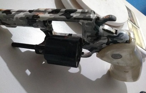 Os policiais localizaram o objeto que se tratava de um revólver calibre 32, com numeração não identificada, com cinco munições – uma delas picotada. Em continuidade a revista foram encontradas quatro porções de substâncias aparentemente entorpecentes (cocaína e maconha), totalizando juntas cerca de 10 gramas. Também foram localizadas a quantia de R$ 32 em espécie e uma motoneta com a placa adulterada (fabricação caseira).